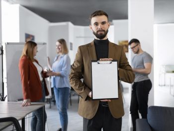 man writing on paper